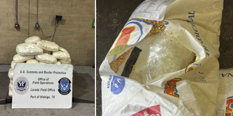 Pharr, Texas.– Oficiales de la Oficina de Aduanas y Protección Fronteriza de Estados Unidos (CBP, por sus siglas en inglés) aseguraron más de mil libras de metanfetamina ocultas dentro de un cargamento de cereal que ingresaba desde México por el Puente Internacional Pharr.
