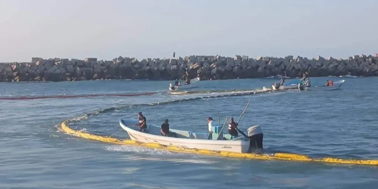 Tampico Alto, Veracruz.- En una respuesta de emergencia para salvaguardar el ecosistema y la economía local, el gobierno municipal de Tampico Alto, en coordinación con Pemex y pescadores voluntarios, instaló una barrera de contención en la barra de Tampachiche. La medida busca impedir que los residuos de petróleo provenientes del reciente derrame en el Golfo de México penetren en la Laguna de Tamiahua, uno de los santuarios pesqueros más importantes del norte del estado y principal sustento de cientos de familias en la región.