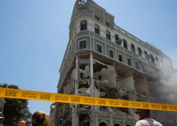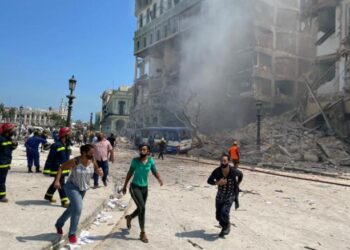 Una explosión sacudió el centro de La Habana, Cuba este viernes, destruyendo el Hotel Saratoga. Autobuses y automóviles fuera del...