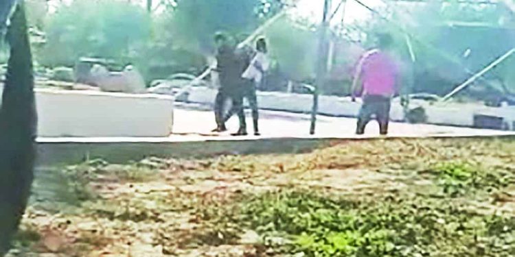 Reynosa, Tamaulipas.- Una riña registrada al mediodía del sábado en la plaza Benito Juárez fue detenida gracias a la intervención de un ciudadano, luego de que una mujer, aparentemente bajo los efectos de sustancias, agrediera a un peatón que caminaba por el lugar.