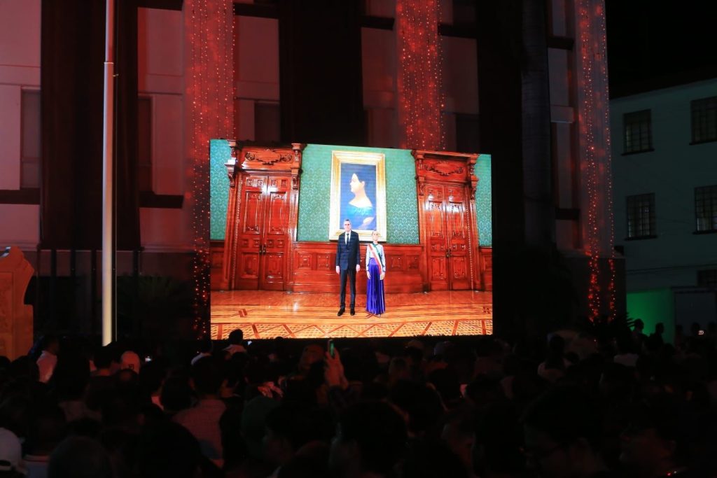 Mediante un enlace virtual, el gobernador junto a la presidenta del DIF Tamaulipas, María de Villarreal y las y los asistentes presenciaron el histórico Grito de Independencia de la primera presidenta de México, Claudia Sheinbaum Pardo, desde Palacio Nacional.
