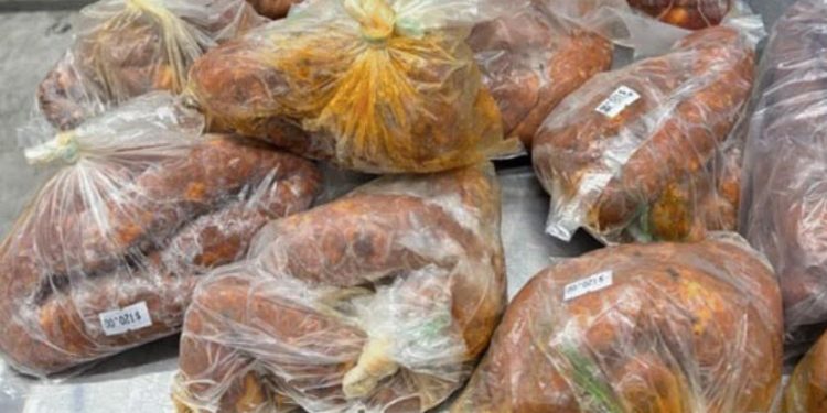 Laredo, Texas.- Oficiales de la Oficina de Aduanas y Protección Fronteriza de Estados Unidos (CBP, por sus siglas en inglés), junto con especialistas en agricultura del Puerto de Entrada de Laredo, aseguraron cerca de 68 libras de chorizo que no había sido declarado al ingresar al país, informó la agencia federal.