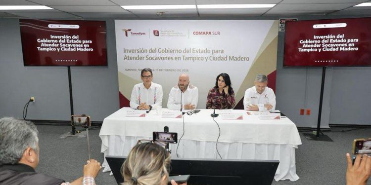 En rueda de prensa, el secretario de Recursos Hidráulicos, Raúl Quiroga Álvarez, acompañado por la alcaldesa de Tampico, Mónica Villarreal; el presidente municipal de Ciudad Madero, Erasmo González Robledo; y el gerente de Comapa Sur, Francisco González Casanova, explicó que la infraestructura hidrosanitaria de la zona presenta una antigüedad aproximada de 60 años, derivada de un rezago histórico en materia de conservación y rehabilitación.