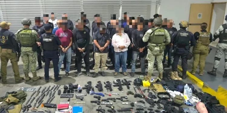 Vista Hermosa, Michoacán.- Un operativo de la Guardia Civil, Ejército Mexicano, Fiscalía, policías municipales y Guardia Nacional permitió la detención de 38 personas vinculadas a la iglesia de la Luz del Mundo, quienes se encontraban en un campamento improvisado con armas hechizas y vestimenta táctica.