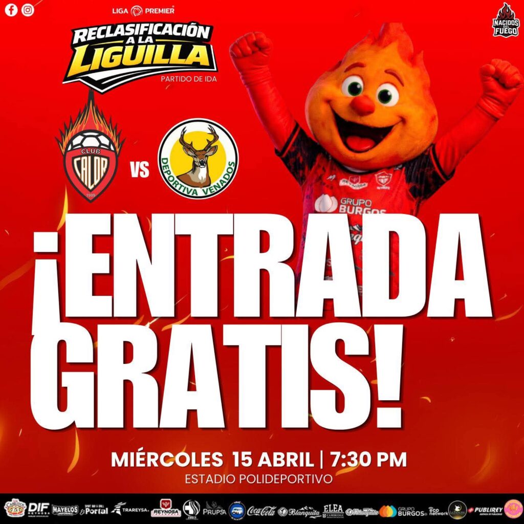 La afición cumplió y el equipo lo celebra en grande. Club Calor confirmó oficialmente que la entrada será totalmente gratuita para el partido de ida de la reclasificación, que se jugará este próximo miércoles 15 de abril a las 7:30 de la noche en el Estadio Polideportivo.