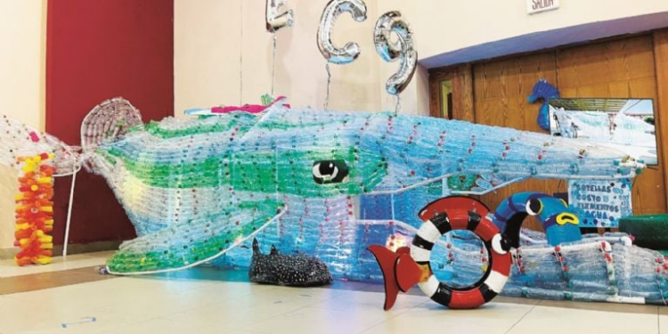 Nuevo Laredo, Tamaulipas — Con el objetivo de combatir la contaminación y prevenir inundaciones, la comunidad escolar de la Secundaria General No. 9 llevó a cabo un proyecto integral de reciclaje que culminó en la creación de una impresionante escultura de una ballena. El profesor Edgar Armando Díaz Montoya informó que la iniciativa surgió tras realizar labores de limpieza en un arroyo ubicado frente al plantel, donde la acumulación de plásticos y llantas representaba un riesgo constante de desbordamiento durante la temporada de lluvias. En total, se recolectaron y reutilizaron alrededor de mil 500 botellas para dar vida al cetáceo.