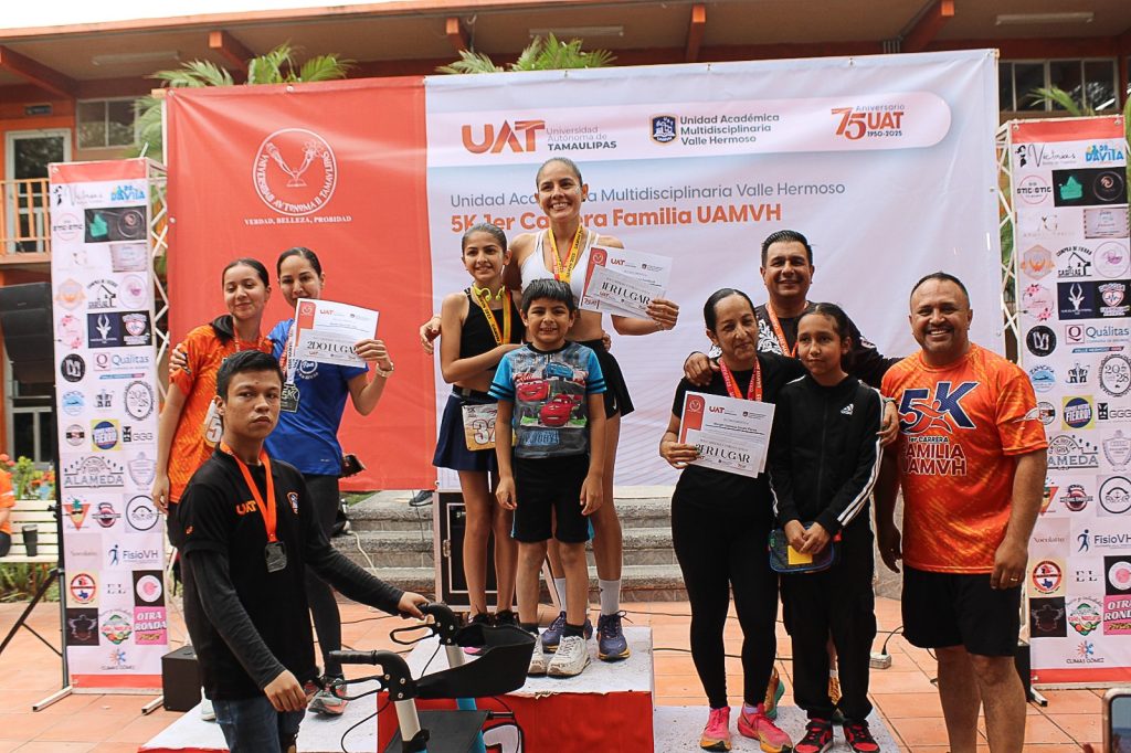 Valle, Hermoso, Tamaulipas.- La Universidad Autónoma de Tamaulipas (UAT) celebró con gran éxito la Primera Gran Carrera Familia UAMVH 5K en Valle Hermoso, evento que reunió a más de 900 participantes en un ambiente de entusiasmo y convivencia deportiva. Desde temprana hora, las principales avenidas de la ciudad se llenaron de corredores y familias que respondieron al llamado de la institución para fomentar el deporte y la vida saludable.