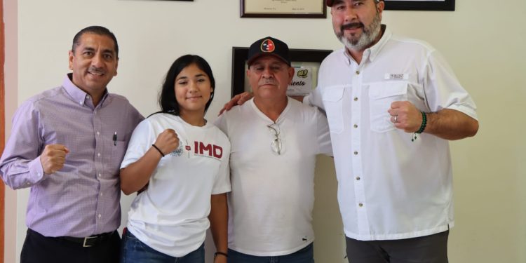 Reynosa, Tamaulipas.- El Alcalde Carlos Peña Ortiz, felicita y desea el mayor de los éxitos a la joven boxeadora Lidia Monserrat García Martínez, quien representará al estado de Tamaulipas en las Olimpiadas Nacionales CONADE 2025, que se celebran en el estado de Puebla.