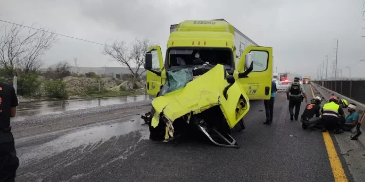 Santa Catarina, Nuevo León.- Un hombre murió y otro resultó lesionado tras un choque entre dos tractocamiones registrado la mañana de este miércoles en el kilómetro 2 del Libramiento Noroeste. El accidente ocurrió alrededor de las 05:56 horas, de acuerdo con reportes de Protección Civil de Nuevo León.