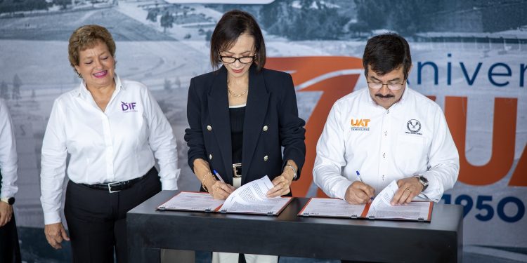Ciudad Victoria, Tamaulipas.- Con el objetivo de continuar impulsando el proyecto de estufas ecológicas en beneficio de la población en zonas rurales del estado, el Sistema para el Desarrollo Integral de la Familia de Tamaulipas, que preside la doctora María de Villarreal, firmó un convenio de colaboración con la Universidad Autónoma de Tamaulipas (UAT).