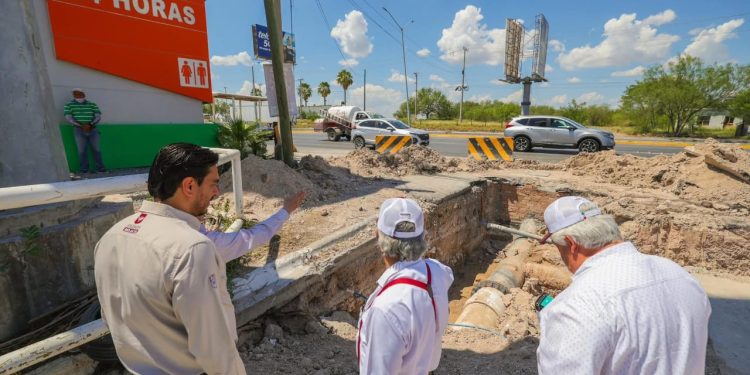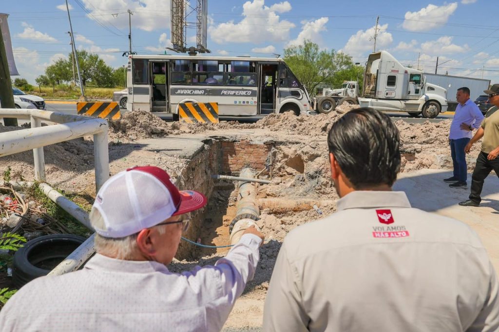 El Alcalde Carlos Peña Ortiz supervisó la obra de sustitución de tubería de agua potable que se lleva a cabo en la calle Rosario con bulevar Miguel Hidalgo, en la colonia Lomas de Jarachina, municipio de Reynosa.