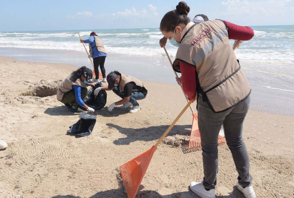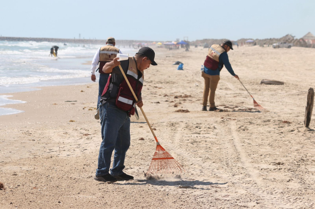 Las labores se realizan de manera coordinada con brigadas de Empleo Temporal de la SEDUMA, integradas por habitantes de La Pesca capacitados por la Procuraduría Federal de Protección al Ambiente (PROFEPA) en el manejo de residuos de hidrocarburo. A estas acciones se suman personal de la Secretaría de Bienestar y elementos de la Secretaría de Marina, quienes llevaron a cabo un barrido manual, para retirar el material detectado.