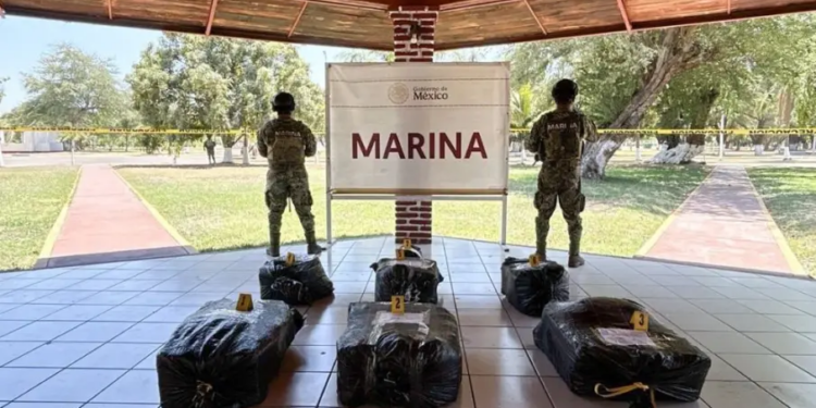 Lázaro Cárdenas, Michoacán.— Elementos del Gabinete de Seguridad, encabezados por la Secretaría de Marina (Semar), lograron el aseguramiento de una embarcación menor que transportaba aproximadamente 265 kilogramos de presunta cocaína en el litoral michoacano. El operativo, que incluyó persecución marítima y aérea, evitó la distribución de más de 530 mil dosis de droga.