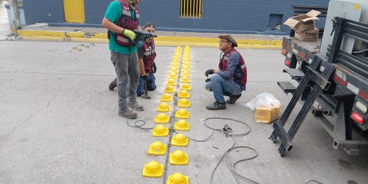 Reynosa, Tamaulipas.- El Presidente Municipal Carlos Peña Ortiz impulsa medidas de orden vial para mejorar la seguridad en Reynosa, enfocándose en la protección de los peatones, en especial en zonas escolares con el objetivo de reducir la velocidad de los vehículos en áreas específicas, por ello el la Secretaría de Servicios Públicos instala boyas de tráfico.
