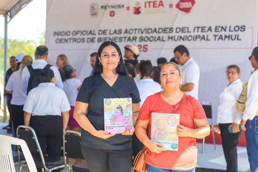 Reynosa, Tamaulipas.- El Presidente Carlos Peña Ortiz dio el Inicio Oficial de las Actividades del ITEA en los Centros de Bienestar Social Municipal TAMUL 2025, acompañado por la Directora del Instituto Tamaulipeco de Educación para Adultos, Gloria Guadalupe González González.