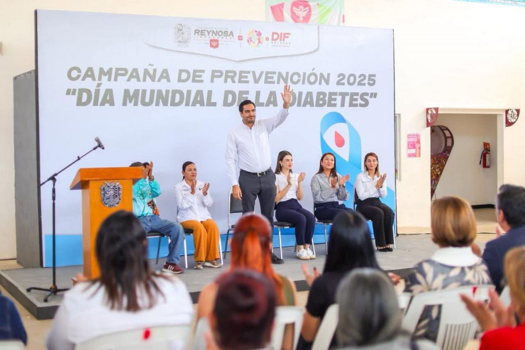 Reynosa, Tamaulipas.- Al dar inicio a la Campaña de Prevención 2025 del Día Mundial de la Diabetes, el Presidente Carlos Peña Ortiz aseguró: “es un gusto verlos aquí en el DIF donde inicié como servidor público, con mucho orgullo porque a final de cuentas este es el corazón del Municipio donde se atiende a los grupos más vulnerables. En este Día Mundial de la Diabetes buscamos con nuestra política pública dar un contexto de prevención a este tipo de enfermedades”.