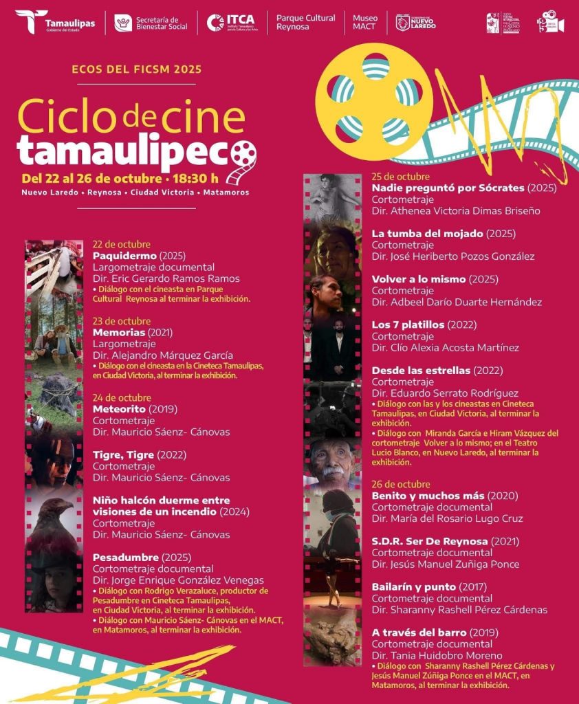 La cartelera completa del Ciclo de Cine Tamaulipeco está disponible en las redes sociales del Instituto Tamaulipeco para la Cultura y las Artes.
