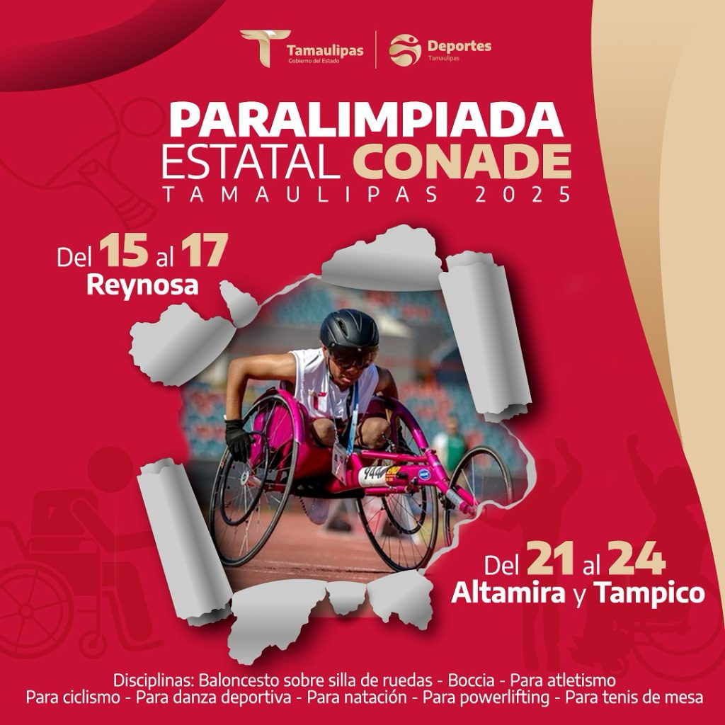 Ciudad Victoria, Tamaulipas.- El Instituto del Deporte de Tamaulipas (INDE) ha anunciado la apertura de inscripciones para la Paralimpiada Estatal CONADE 2025, un evento que busca impulsar el deporte adaptado y fomentar la inclusión. La competencia, que servirá como selectivo para la etapa nacional, se desarrollará en dos fases: del 15 al 17 de agosto en Reynosa y del 21 al 24 de agosto en Altamira y Tampico. Se espera la participación de los mejores atletas del estado.