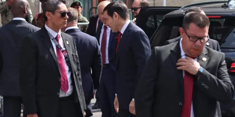 Ciudad de México.- El secretario de Estado de Estados Unidos, Marco Rubio, arribó esta mañana a Palacio Nacional para reunirse con la presidenta Claudia Sheinbaum, acompañado de una comitiva de funcionarios estadounidenses.