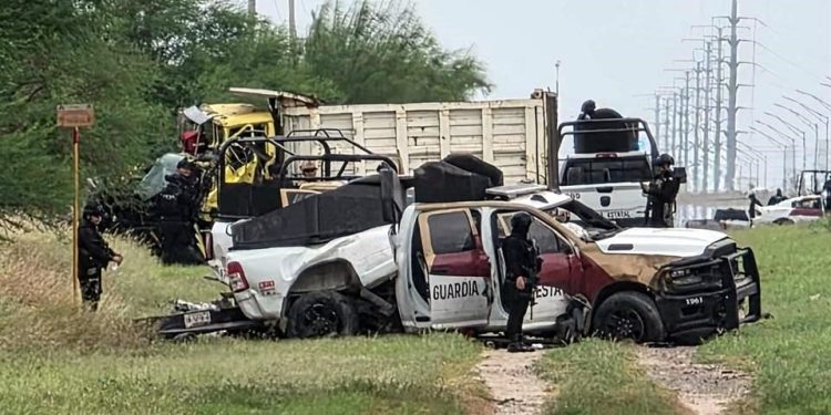 Nuevo Laredo, Tamaulipas.- Un trágico accidente cobró la vida de dos elementos de la Guardia Estatal la tarde del martes, luego de que la patrulla en la que viajaban chocara con un camión de carga en la carretera Anáhuac-Nuevo Laredo, a la altura de la colonia El Campanario, cerca del parque industrial Oradel.