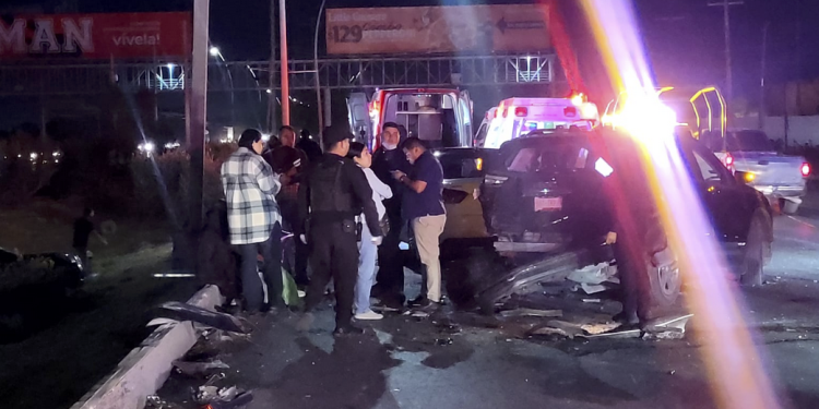 Reynosa, Tamaulipas.- Un aparatoso accidente vehicular en el que se vieron involucradas cuatro unidades motrices dejó como saldo al menos cinco personas heridas sobre el libramiento Monterrey-Reynosa. El percance ocurrió durante la noche a la altura de la colonia Cumbres, a pocos metros de las instalaciones del centro de vigilancia C5, lo que obligó a las autoridades a cerrar dos carriles de circulación para facilitar las labores de rescate y remoción.