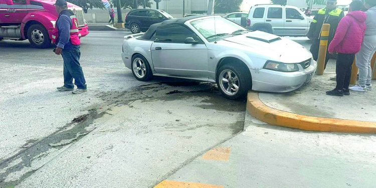 Reynosa, Tamaulipas.- Un joven automovilista protagonizó un accidente vial luego de que su vehículo Ford Mustang se impactara contra tubos de protección al realizar una maniobra para evitar una colisión con otro automóvil que invadió su carril.