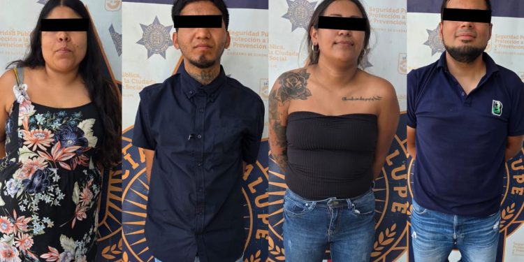 Guadalupe, Nuevo León.– Cuatro personas fueron detenidas por la policía municipal tras ser sorprendidas robando productos cárnicos y artículos de higiene en una tienda de autoservicio ubicada en la colonia Residencial Las Quintas. El hecho ocurrió la tarde del domingo, cuando los implicados intentaron salir del establecimiento sin pagar.