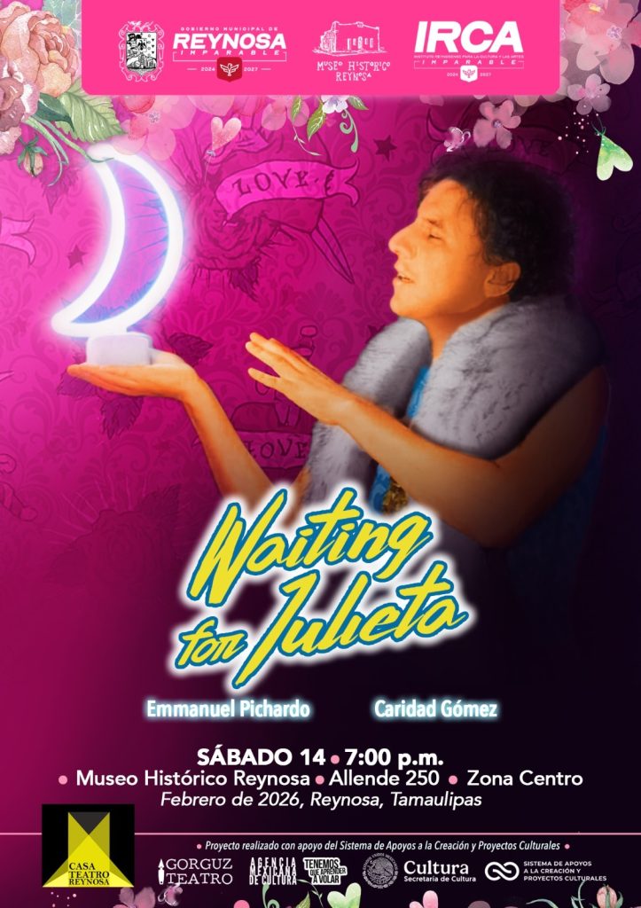 Reynosa, Tamaulipas.- El Gobierno de Reynosa, que preside el Alcalde Carlos Peña Ortiz, invita a disfrutar la puesta en escena “Waiting for Julieta” este sábado 14 de febrero a las 19:00 horas en el Museo Histórico Reynosa, con entrada libre para todo el público.