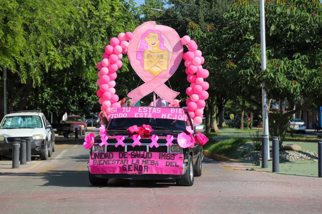 Ciudad Victoria, Tamaulipas.- Como parte de las actividades para conmemorar el mes de la Lucha contra el Cáncer de Mama, la Secretaría de Salud a través de la Unidad de Enfermería y el Distrito de Salud para el Bienestar No. 1 de Victoria (Jurisdicción Sanitaria) realizaron la “Caravana Rosa”.