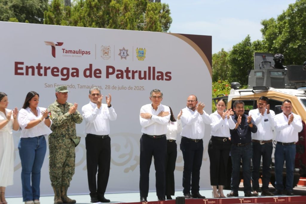 San Fernando, Tamaulipas.- En materia de seguridad pública se trabaja día con día, y esto se refleja en los indicadores que colocan a Tamaulipas entre los diez estados más seguros del país, afirmó el gobernador Américo Villarreal Anaya, al continuar con la entrega de 330 nuevas unidades que se están distribuyendo en todo el estado para reforzar las tareas de patrullaje y vigilancia, en esta ocasión en el municipio de San Fernando y la región.