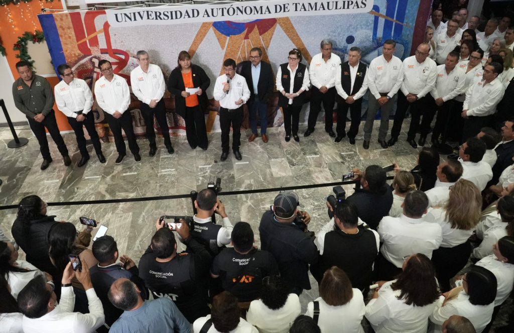 Ciudad Victoria, Tamaulipas.- Con el respaldo del gobernador Américo Villarreal Anaya, la Universidad Autónoma de Tamaulipas (UAT) ha alcanzado avances históricos que la posicionan entre las instituciones de educación superior con mayor reconocimiento a nivel nacional, afirmó el rector Dámaso Anaya Alvarado durante la salutación de Año Nuevo con autoridades universitarias.