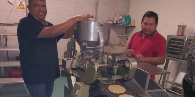 Durante el recorrido, el secretario de Desarrollo Rural, Pesca y Acuacultura, Antonio Varela Flores, y el secretario técnico de la Oficina del Gobernador, Earl Tuexi Amaro, revisaron el funcionamiento de los reactores desarrollados por la empresa y probaron tortillas elaboradas exclusivamente con sorgo, analizando sus ventajas para la agroindustria local.