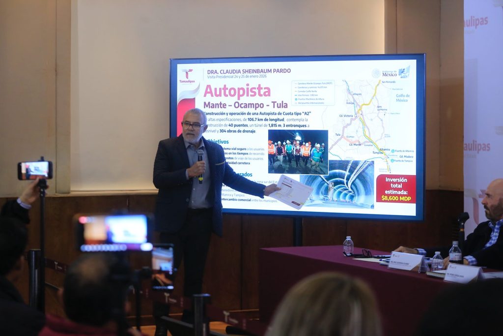 Expuso que la carretera Mante-Ocampo-Tula, en la que se han invertido 8 mil 600 MDP, registra un avance del 90 por ciento, en tanto que para la ampliación del Puente Internacional Nuevo Laredo III se estima invertir mil 400 MDP para crecerlo a ocho carriles.