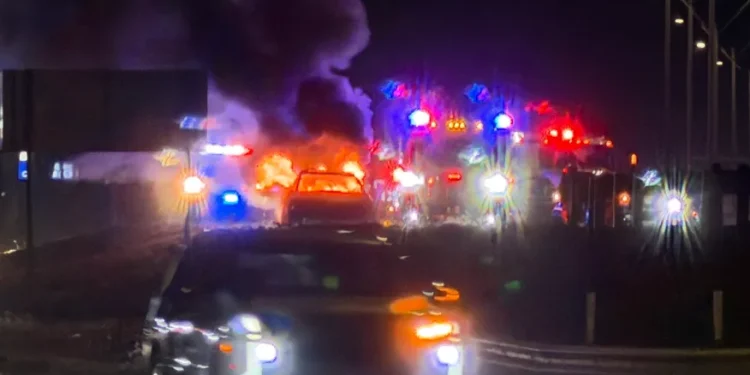 Weslaco, Texas.- Un vehículo envuelto en llamas provocó afectaciones a la circulación la noche de este lunes en las inmediaciones de Salinas Rd y Westgate Rd, en el tramo que conecta a Donna con Weslaco, informaron autoridades locales.