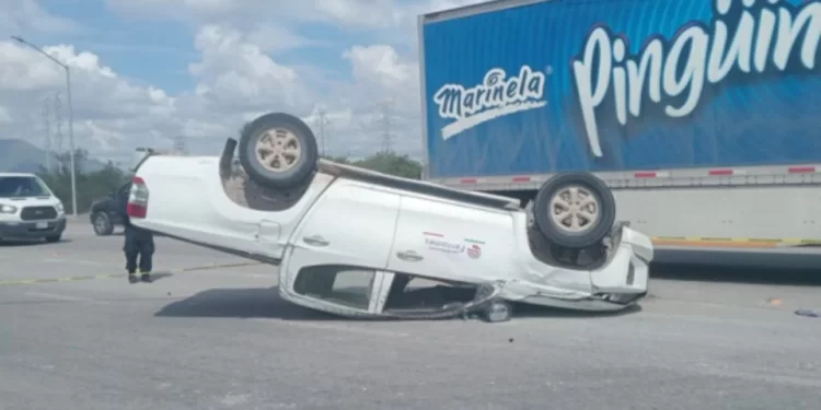 El Carmen, Nuevo León.- Una persona murió y siete más resultaron lesionadas tras una volcadura registrada en el kilómetro 12 de la carretera a Monclova, la tarde de este miércoles. De acuerdo con Protección Civil de Nuevo León, el accidente ocurrió alrededor de las 12:30 horas e involucró dos automóviles particulares y una camioneta de la empresa Ferromex, la cual terminó volcada tras el impacto.